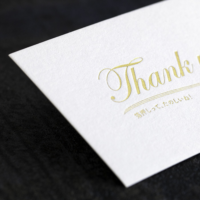 ハーフエアは空気を吸いこんだような柔らかい雰囲気のある用紙です。厚み(0.42mm)があるため箔押しした部分に凹凸を表現することができます。