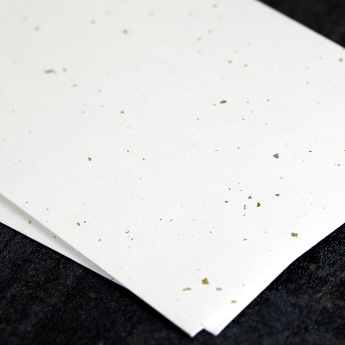 和紙の里、越前で漉いて作られた封筒です。表面に金箔と銀箔が散りばめたられており、高級感と華やかさがあります。