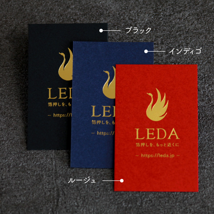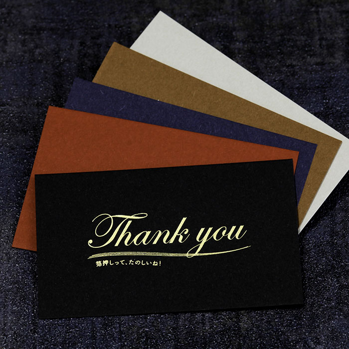赤や濃紺など深い色合いの紙と、輝く箔の相性は抜群!特別なオリジナルカードの制作が可能です。