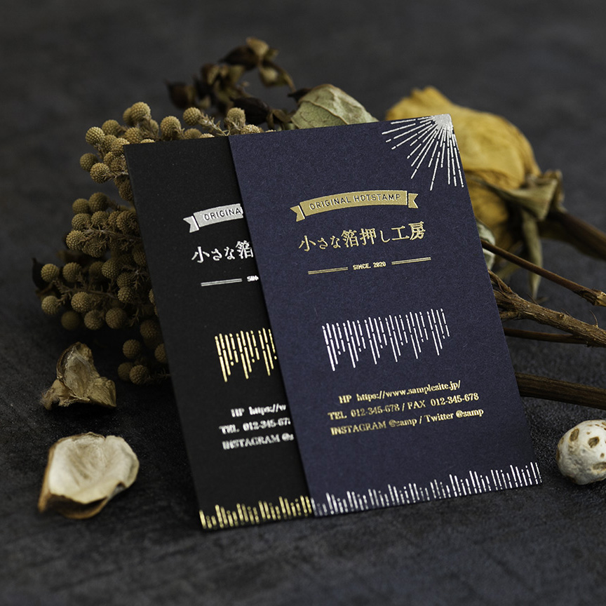 赤や濃紺など深い色合いの紙と、輝く箔の相性は抜群!特別なオリジナルカードの制作が可能です。