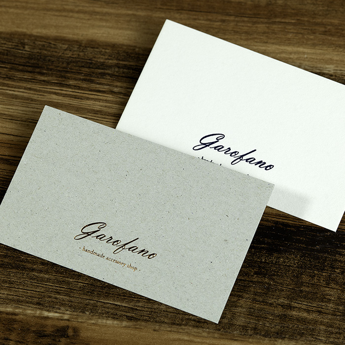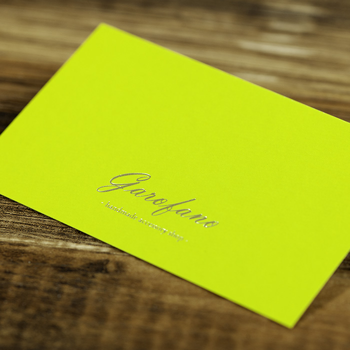 箔押しの範囲を「10平方cm以内」にすることで低価格を実現した箔押し印刷商品です。サイズは一般的な名刺サイズ。極厚紙のため高級感は抜群です。アクセサリー台紙やサンキューカードの作成などにもご利用いただけます。